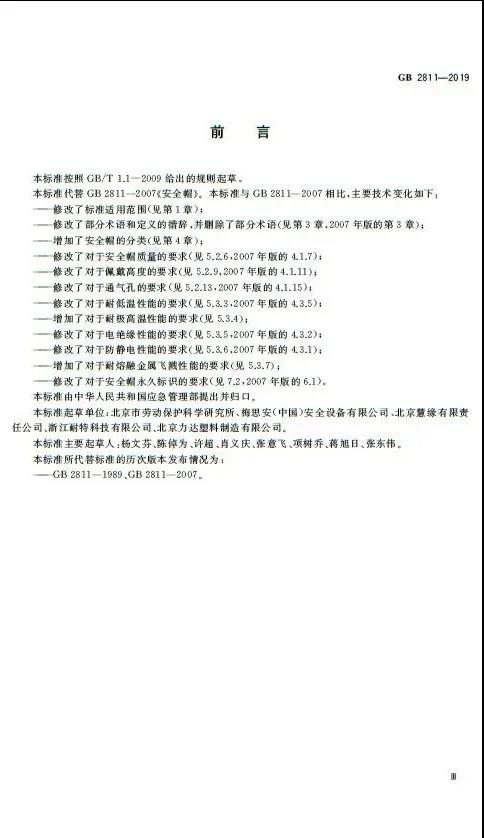 相比較于舊版GB2811-2007,新版安全帽標準GB2811-2019《頭部防護 安全帽》做出了如下修改: